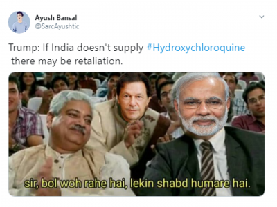 ट्रम्प यांच्या या धमकीला विदेश मंत्रालयाने सणसणीत उत्तर दिलंय. सर्वप्रथम भारताजवळील गरजवंत देशांना आम्ही हायड्रोक्सीक्लोरोक्वीन गोळ्यांची पूर्तता करणार असल्याचे भारताने स्पष्ट केले आहे. दरम्यान, ट्रम्प यांचं वक्तव्य भारतीयांना काही आवडलेलं नाही. त्यांनी लगेच ट्रम्प यांच्यावर काही मीम्स तयार केलेत. जे आता व्हायरल झाले आहेत.