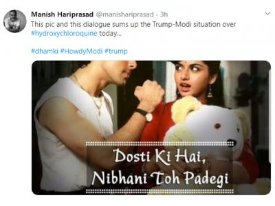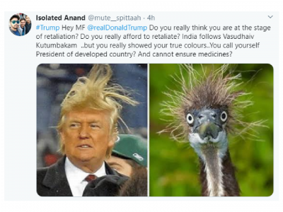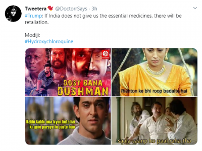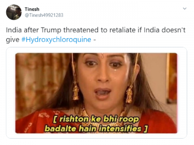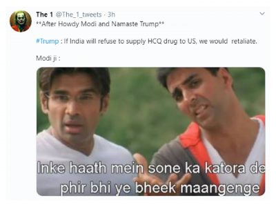 अमेरिकेचे राष्ट्राध्यक्ष डोनाल्ड ट्रम्प यांनी भारताबाबत असं विधान केलं की, त्यावरून ते ट्विटरवर ट्रेन्ड होत आहेत. ट्रम्प म्हणाले होते की, भारताने हायड्रॉक्सीक्लोरोक्वीवरील प्रतिबंध हटवले नाही तर अमेरिका कारवाई करेल. त्यावर परराष्ट्र मंत्रालयाने उत्तर दिलं होतं की, कोणत्याही सरकारचं हे कर्तव्य असतं की, आधी आपल्या देशातील लोकांना सर्व औषधे किंवा उपचार मिळावे. त्यामुळे औषधावर काही प्रतिबंध लावण्यात आले होते.