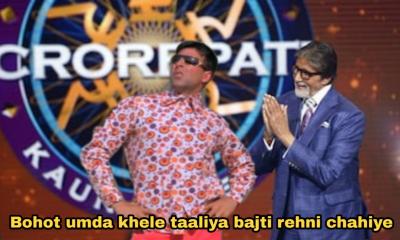 'कौन बनेगा करोडपती' हा टीव्हीच्या दुनियेतील एक लोकप्रिय शो आहे. यात सर्वसामान्य लोकांसह अनेक सेलिब्रिटीही महानायक अमिताभ बच्चन यांच्यासोबत हा खेळ खेळले आहेत. अमिताभ यांचे केबीसीतील हिंदी डायलॉग्स तर फारच फेमस आहेत. लोक या डायलॉगवरून मीम्सही बनवतात. अशाच एका @indianpunner ने काही भारी मीम्स तयार केले आहेत. यात त्याने कल्पना केली आहे की, 'हेराफेरी'मधील राजू म्हणजेच अक्षय कुमार केबीसीमध्ये जाईल तर शोमधील वातावरण कसं असेल? चला बघुया नेमकं काय होईल शोमध्ये....(Image Credit : @indianpunner)