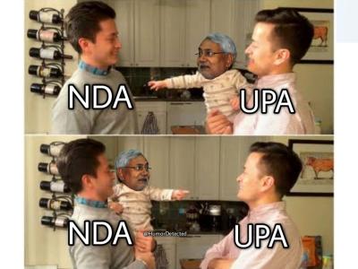 राजकारण असो, मनोरंजन असो किंवा मग क्रिडा प्रत्येक क्षेत्रातील महत्वाच्या घडामोडींवर सोशल मीडियात एकापेक्षा एक मिम्स व्हायरल होत असतात. नेटिझन्सच्या कल्पनाशक्तीला तोड नसते. अशी अनेक उदाहरणं आपण आजवर पाहिली असतील. आता नितीश कुमारांच्या बाबतीतही तेच घडताना दिसत आहे.