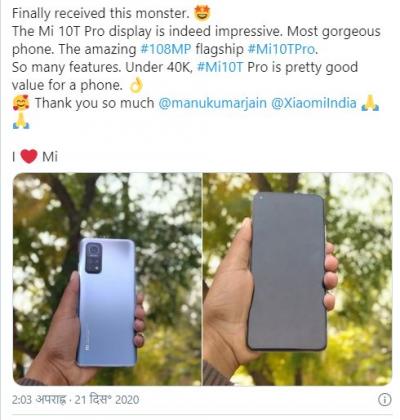 उत्तर प्रदेशच्या कमल अहमदने हे ट्विट केले होते. त्याने ट्विटमध्ये थेट Mi 10T Pro चे नाव लिहिले होते. कंपनीने अहमदला तो फोन गिफ्ट केल्यानंतर त्याने फोटो शेअर केले आहेत. यामध्ये त्याने ''अखेर...तो मॉन्स्टर मिळालाच'' कॅप्शन लिहिले आहे.