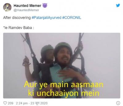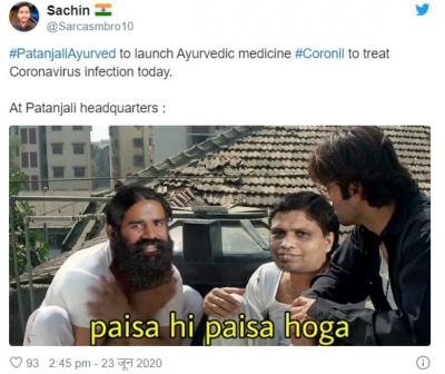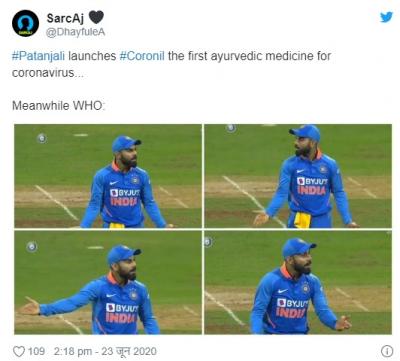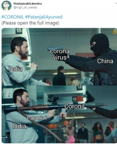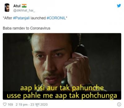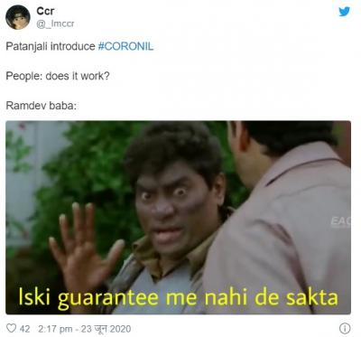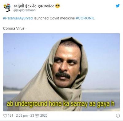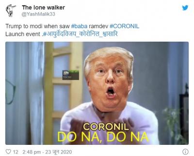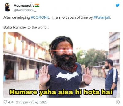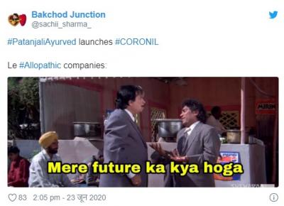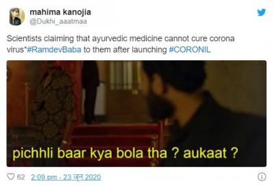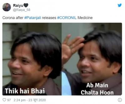 योगगुरु बाबा रामदेव आणि पंतजलीचे सीईओ बालकृष्ण यांनी या औषधाच्या क्लिनिकल ट्रायलचे निकाल समोर आणले. परंतू सोशल मीडिया युजर्सनी याबाबत चांगलीच खिल्ली उडवली आहे.सोशल मीडियावर मीम्स तुफान व्हायरल होत आहेत.