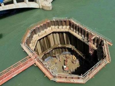 पाण्यात पुल तयार करण्यासाठी आधी अशाप्रकारे खांबांची जागा तयार केली जाते. पाणी ज्याप्रकारे अडवलंय ते आश्चर्यकारक आहे.