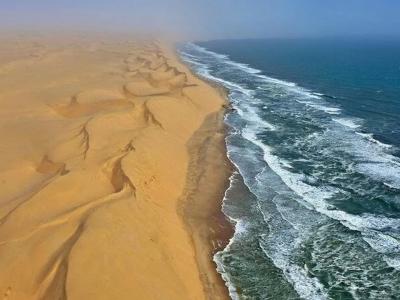 नामीबियातील या ठिकाणी समुद्र वाळवंटाला येऊन मिळतो. सामान्यपणे असं चित्र फारच कमी बघायला मिळतं. त्यामुळे हा नजारा अद्बुत आहे.