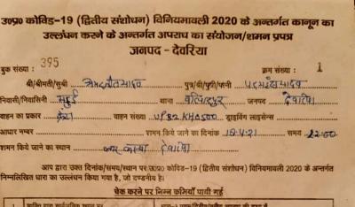 मास्क लावला नाही म्हणून एका माणसानं एकदा १ हजार रूपये आणि नंतरच्या दिवशी १० हजारांचा दंड भरला आहे. उत्तर प्रदेशातील देवरियाच्या बरियापूर पोलिस स्थानक परिसरात महूआ गाववातील निवासी अमरजीत यादव हे रविवारी क्रेटा कारनं तोंडाला मास्क न लावता निवडणूक प्रचाराला निघाले.