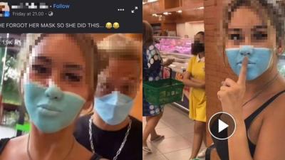 या दोघांपैकी एकीने हा प्रकार केला होता. तिने दुकानदाराला मूर्ख बनविण्यासाठी तिच्या चेहऱ्यावर सर्जिकल मास्कच्या रंगाची पेंटिंग काढली होती. हा आकाशी निळा रंग होता.