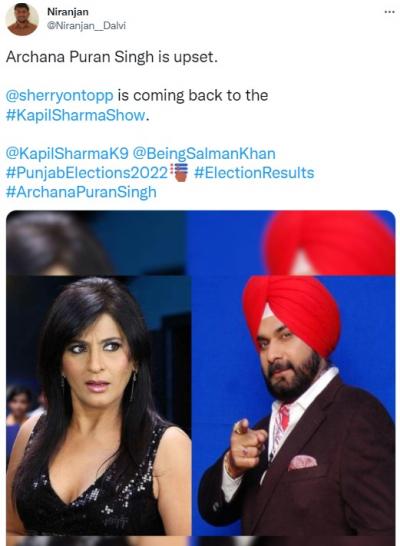 ट्विटर यूजर्स म्हणत आहेत की, अर्चना पूरन सिंहसाठी हा कठिण आणि त्रासदायक काळ आहे. कारण आता तिची कपिल शर्मा शोमधील खुर्ची हिसकावली जाणार आहे. यूजर्स म्हणाले की, सिद्धू निवडणूक हरल्याने द कपिल शर्मा शोमध्ये पुन्हा परत येणार आहेत. त्यांचं राजकीय करिअर संपलं आहे.