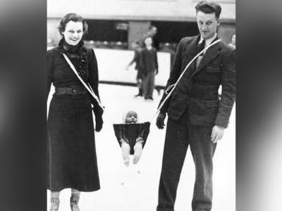 १९३३ मध्ये स्केटिंक शिकत असणारा लहान मुलगा....