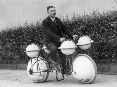 ही सायकल जमीन आणि पाणी दोन्हींवर चालवली जाऊ शकत होती. हा फोटो १९३० मधील आहे.