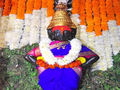 झेंडू,पांढरी चमेली तर हिरवी तुळशी अश्या तीन रंगाच्या छटांनी मंदिर फुलून गेलं आहे.
