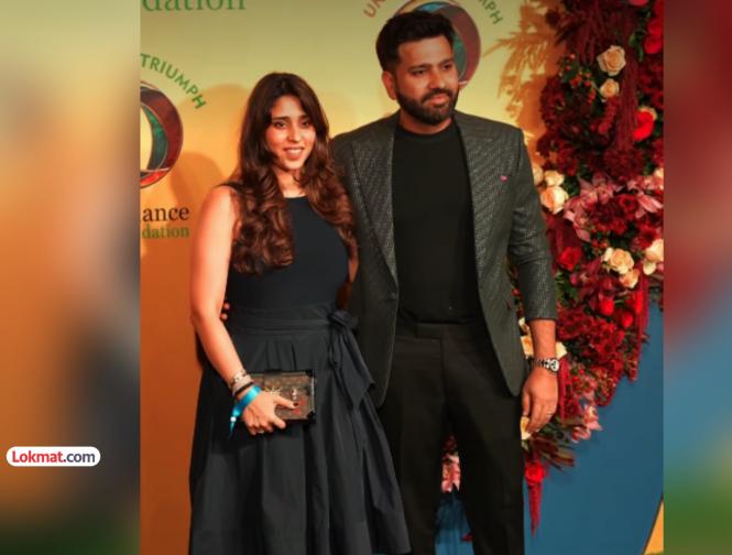 रोहित शर्मासोबत या कार्यक्रमात त्याची पत्नी रितिका सजदेह देखील हजर होती. तिने गडद रंगाचा सुंदर वनपीस परिधान केला होता.