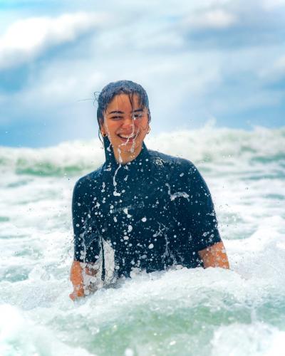 सर्फिंगचा मनसोक्त आनंद घेत असताना सारा तेंडुलकर ही एखाद्या जलपरीसारखी खूपच सहजतेने मार्गक्रमण करत होती