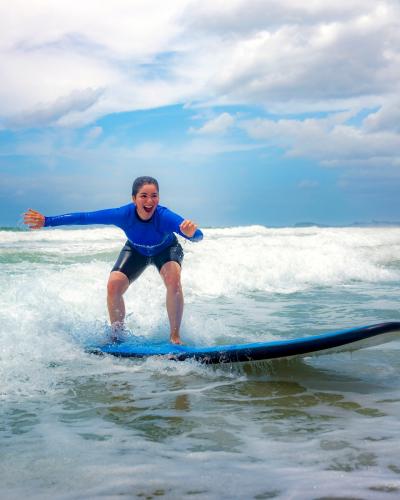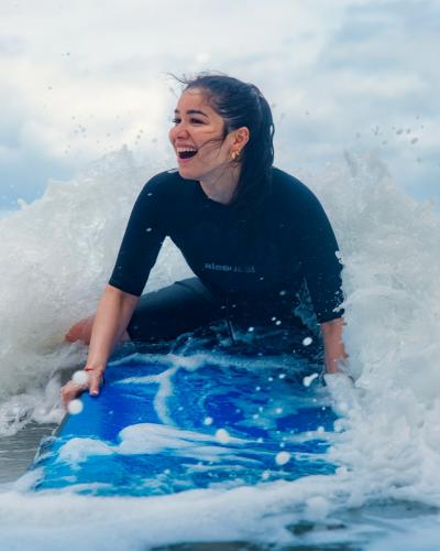 Sara Tendulkar Surfing Sea Waves Photos : साराला साहसी खेळांची आवड आहे. जेव्हा संधी मिळते, तेव्हा ती असे चित्तथरारक अनुभव घेत असते.