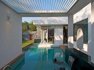 वेटीं रुम आणि गेस्ट रुमदरम्यान एक शानदार स्वीमिंग पूलही आहे. हा स्वीमिंग पूल अशाप्रकारे डिझाइन करण्यात आला आहे की, बाहेर कितीही उन असलं तरी यावर मात्र सावलीच राहणार.