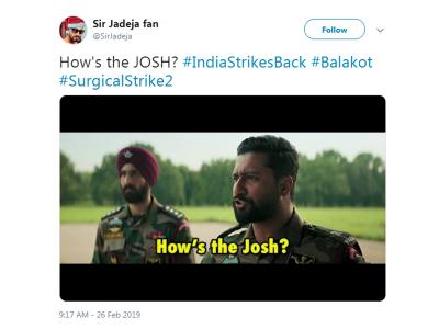भारताच्या या हवाई हल्ल्यानंतर सोशल मीडियावरुन भारतीय सैन्याचे आभार मानण्यात येत आहेत. तसेच #josh, #Air strike, #indianairforce #balakot #surgicalstrike2 हे हॅशटॅग ट्रेंड करत आहेत. तसेच काही मजेदार मिम्सही व्हायरल झाले आहेत.
