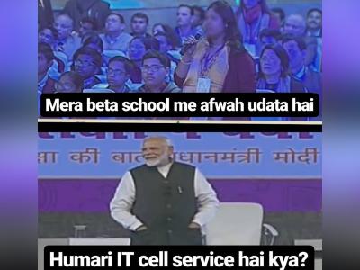 'परीक्षा पर चर्चा २.०' मध्ये पंतप्रधान नरेंद्र मोदी यांनी विद्यार्थी आणि पालकांशी संवाद साधला. यात मोदींनी विद्यार्थी, शिक्षक आणि पालकांच्या समस्यांचं निरसन करण्याचा प्रयत्न केला. याच कार्यक्रमात एका महिलेने पंतप्रधान मोदींसमोर आपली समस्या ठेवली. महिलेने सांगितले की, तिचा मुलगा रात्रभर व्हिडीओ गेम खेळत असतो. त्याची ही सवय कशी सोडवावी? यावर मोदींनी विचारले की, 'ये PUBG वाला हैं क्या?'. झालं यावरून सोशल मीडियात मिम्स येण्यास सुरूवात झाली. लोक वेगवेगळ्या प्रश्नांची उत्तरं मोदींच्या अंदाजात देत आहेत.