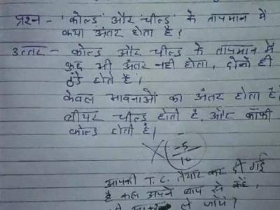 एका विद्यार्थ्याने उत्तर पत्रिकेत सर्दी आणि थंडीत फरक समजून सांगितला आहे.