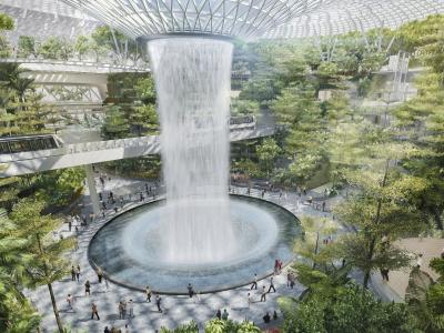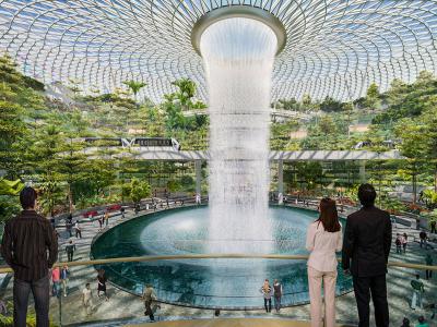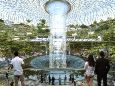 सिंगापूरचं JewelChangi Airport हे जगातलं सर्वात सुंदर एअरपोर्टपैकी एक आहे. सध्या या एअरपोर्टची चर्चा चांगलीच रंगली आहे. कारण या एअरपोर्टवर जगातला सर्वात मोठा इनडोअर वॉटरफॉल तयार करण्यात आला आहे. हा वॉटरफॉलचं पाणी १३१ फूट उंचीवर खाली पडतं. तसेच सायंकाळी इथे लाइट अॅन्ड साउंड शो सुद्धा होतो.