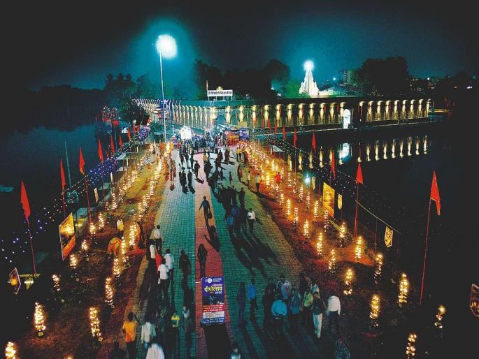 1 / 9‘लोकमत’च्या संकल्पनेतून लक्ष दीपोत्सव... सोलापूरचे ग्रामदैवत शिवयोगी श्री सिद्धरामेश्वर यात्रेच्या पार्श्वभूमीवर ‘लोकमत’च्या संकल्पनेतून आणि विविध सेवाभावी संस्थांच्या वतीने जातीधर्माच्या भिंती दूर सारून सर्वधर्मीयांचा लक्ष दीपोत्सव सोहळा शुक्रवारपासून सुरू झाला़ सायंकाळी लक्ष-लक्ष दिव्यांनी मंदिर अन् तलाव परिसर असा उजळून निघाला. या नयनरम्य सोहळ्याची टिपलेली ही छायाचित्रे. 2 / 9गणपती घाटावर सोलापूरकरांनी हजारो पणत्या प्रज्वलित केल्यानंतरचे मनोहारी दृश्य.3 / 9सुवासिनींनी दीपोत्सवात आमचाही सहभाग या जाणिवेतून पणती प्रज्वलित करून ग्रामदैवत सिद्धरामेश्वरांच्या चरणी आपली सेवा रुजू केली.4 / 9श्री सिद्धेश्वर मंदिर परिसरातील गणपती घाट येथील दीपोत्सवामध्ये सहभागी होऊन श्रीमन् नारायण सेवा संस्था आणि श्री मार्कंडेय जनजागृती संघाच्या सदस्यांनी पणत्या प्रज्वलित करून ‘लोकमत’चे नाव साकारले.5 / 9दीपोत्सवात सहभागी होऊन दीप प्रज्वलित करताना रेश्मा मुल्ला यूथ फाउंडेशनच्या रेश्मा मुल्ला आणि सहकारी.6 / 9दीपोत्सवाचे औचित्य साधून सिद्धेश्वर मंदिरात एम. ए. पटेल फायर वर्क्सचे के. एम. पटेल आणि त्यांचे चिरंजीव हुसेन पटेल यांच्या वतीने शोभेच्या दारूची आतषबाजी होताना दिवाळीचा माहोल या निमित्ताने दिसून आला. यात्रेतील शोभेच्या दारूकामाचा आनंदही भाविकांनी लुटला.7 / 9मंत्रोच्चारात जंगम समाजातील बटूंनी दीपोत्सवात सहभाग नोंदवला.8 / 9सोलापूरकरांनी प्रज्वलित केलेल्या पणत्यांचे तलावातील पाण्यामध्ये उमटलेले प्रतिबिंब पाहून अनेकांनी हे दृश्य आपल्या मोबाईलमध्ये कैद केले.9 / 9कलाकार प्रवीण हक्के यांनी सोन्याचा मुलामा असलेल्या रथातून श्री सिद्धरामेश्वरांची मूर्ती ठेवून ती मिरवणुकीने दीपोत्सवस्थळी आणली. याकामी सामाजिक कार्यकर्ते सकलेश बाभूळगावकर यांचे विशेष सहकार्य लाभले. दीपोत्सवात सहभागी भाविक रथासमवेत सेल्फी काढतानाचे चित्रही दिसत होते.