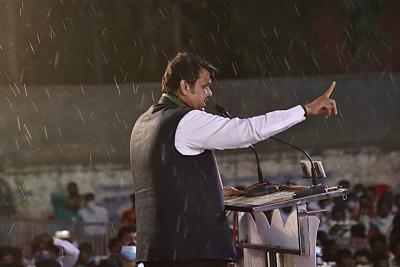 पंढरपूर विधानसभा मतदारसंघाच्या पोटनिवडणुकीसाठी सध्या प्रचार शिगेला पोहोचला आहे. राज्याचे विरोधी पक्षनेते देवेंद्र फडणवीस (Devendra Fadnavis) यांनी येथील भाजपा उमेदवार समाधान अवताडे यांचा प्रचार करताना पावसातील सभेवरुन सत्ताधाऱ्यांना लक्ष केलं.