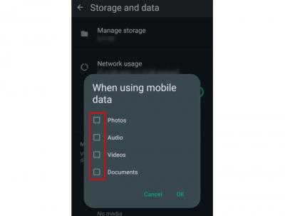 जर तुम्हाला तुमचा इंटरनेट डेटा कमी वापरला जायला हवा असेल तर या सर्व पर्यायांवरील टीकमार्क काढून टाका, जेणेकरून तुम्ही स्वत: डाउनलोड केल्याशिवाय कोणताही फोटो, व्हिडीओ, ऑडियो किंवा डॉक्युमेंट डाउनलोड होणार नाही.