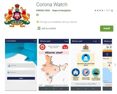 कर्नाटक सरकारच्या स्पेशल टास्क फोर्सने कोरोना व्हायरस संसर्गाची लोकांना माहिती व्हावी यासाठी Corona Watch अॅप लाँच केला आहे. कोरोना वॉच अॅप एक लोकेशन ट्रॅकर अॅप आहे.