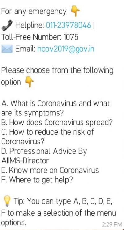 या WhatsApp Chatbot चे नाव MyGov Corona Helpdesk असे ठेवण्यात आले असून तो सर्व युजरना उपलब्ध असणार आहे.