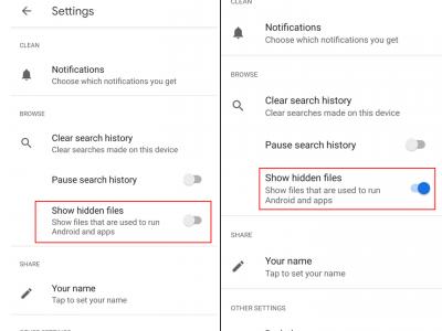 Settings ऑप्शनमध्ये जा. Show hidden files ऑन करा.