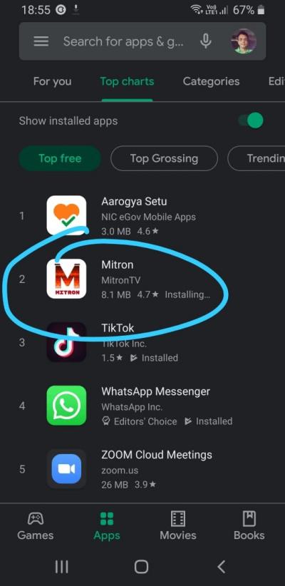 शिवांक अग्रवाल या मुलाने Mitron तयार केले आहे. या अॅपने गुगल प्ले स्टोरवर टॉप फ्री चार्टमध्ये टॉप 10 च्या यादीत स्थान मिळवले आहे.