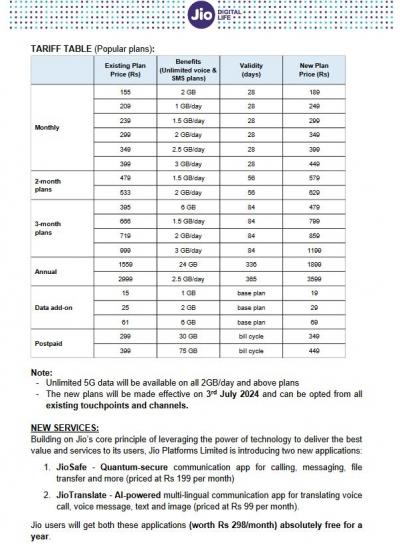 जिओचे फाईव्ह जी अनलिमिटेड वापरायचे असल्यास आधी २३९ रुपयांचे रिचार्ज करावे लागत होते. आता त्यासाठी २ जीबी दर दिवसा ही महत्वाची अट आहे, यानुसार अनलिमिटेड इंटरनेटसाठी ३४९ रुपये महिन्याला म्हणजेच २८ दिवसांसाठी मोजावे लागणार आहेत. यानुसार ३६५ दिवसांसाठी तुम्हाला 4,549.46 रुपये मोजावे लागणार आहेत.