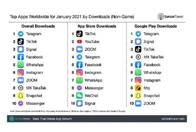 डिसेंबर महिन्यात TikTok हे सर्वाधिक डाउनलोड केले गेलेले अॅप होते. त्यावेळी टेलीग्राम टॉप-5 मध्येही नव्हते. मात्र, केवळ एका महिन्यातच टेलेग्राम पहिल्या क्रमांकावर पोहोचले आहे.