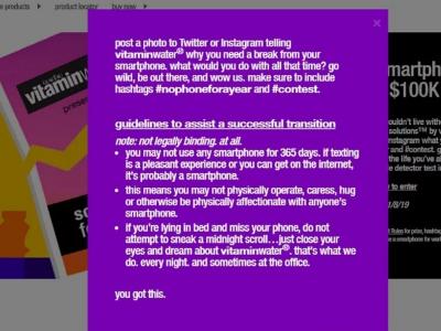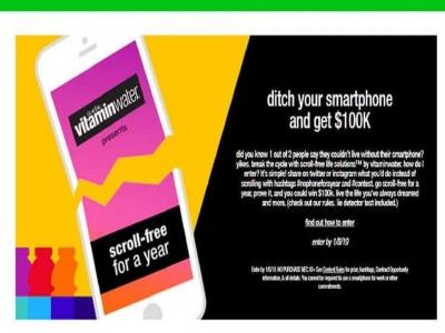 गेल्या वर्षी व्हिटामिन वॉटरने एक स्पर्धा ठेवली होती. स्मार्टफोनच्या आहारी गेलेल्या लोकांना व्यसन सोडविण्याची ती एक कल्पना होती. व्हिटामिन वॉटरने सांगितले की तुम्ही जर 365 दिवस स्मार्टफोनचा वापर करणार नसाल तर 1 लाख डॉलरचे बक्षिस मिळेल.
