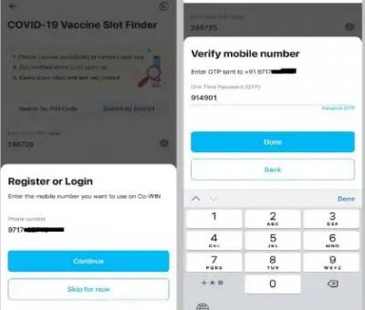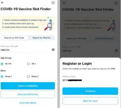 त्यानंतर Check Availability या टॅबवर क्लिक करा. त्यानंतर तुमचा मोबाईल क्रमांक सिलेक्ट करा जो तुम्ही Co-Win अॅपसाठी वापरू इच्छित आहात.