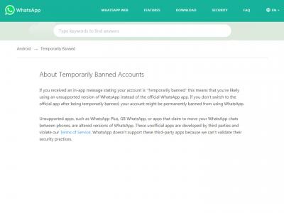 व्हॉट्सअॅपचे थर्ड पार्टी अॅप GB WhatsApp आणि WhatsApp Plus चा वापर केल्यास व्हॉट्सअॅप युजर्सना टेम्पररी बॅन करतं.