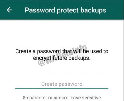 पासवर्ड किमान 8 कॅरेक्टरचे आणि केस सेंसिटिव्ह असेल. पासवर्ड दिल्यानंतर चॅटचा बॅकअप घेतला जाऊ शकतो.व्हॉट्सअॅपने अद्याप या फिचरबाबत कोणतही माहिती दिली नाही. परंतु कंपनी गेल्या काही दिवसांपासून यावर काम करत आहे.