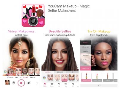 YouCam Makeup- या अॅपमध्ये अनेक फिल्टर उपलब्ध आहेत. ज्यात फोटोला मेकअप करण्यात येते. या अॅपमध्ये फोटोवर लिपस्टिकही लावता येते. तसेच भुवयाही कलर करता येतात.