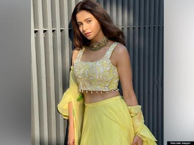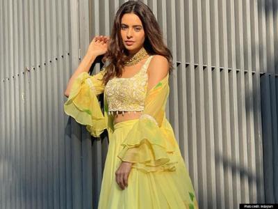 या फोटोत आमना शरीफने पिवळ्या रंगाचा लेहंगा परिधान केला असून ती ग्लॅमरस पोझ देताना दिसते आहे.
