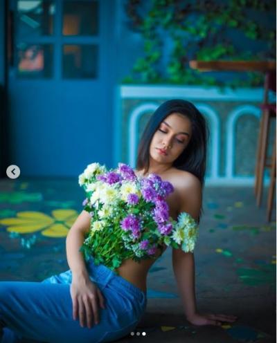 दिव्या अग्रवालने आपल्या इन्स्टाग्राम अकाऊंटवरुन शेअर केलेल्या फोटोत ती खूपच बोल्ड अंदाजात दिसत आहे. यामध्ये ती टॉपलेस असून तिने फुलांचा गुच्छाने स्वत:चे शरीर झाकले आहे.