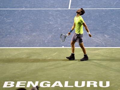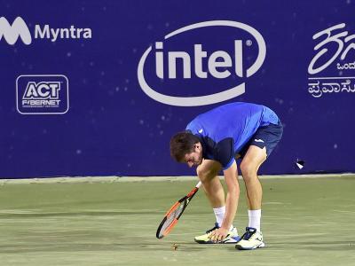 बंगळुरु ओपनमध्ये सामना सुरु असताना स्पेनचा टेनिसपटू पेड्रो मार्टीनेझ फुलपाखरु पकडण्याचा प्रयत्न करताना.