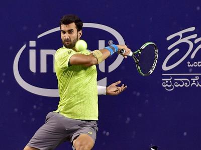 बंगळुरु ओपनमध्ये इंग्लंडचा जय क्लार्क भारताच्या रामकुमार रामानाथन विरुद्ध खेळताना.