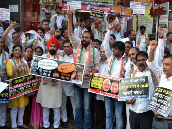 1 / 5मुलुंड येथील काँग्रेस कार्यकर्त्यांनी हातात निषेधाचे फलक व मोदी, शाह आणि जेटली यांचे छायाचित्र घेऊन निषेध नोंदवला आहे. 2 / 5पेट्रोल, डिझेल व गॅसवर अत्याचारी कर व उपकर लादून जनतेस महागडे इंधन विकून त्यांची लूट करणाऱ्या भाजपा सरकारला लुटारू सरकार संबोधत काँग्रेसच्या कार्यकर्त्यांनी निषेध केला. 3 / 5भाजपाने 2014मध्ये सत्तेवर आल्यास इंधनाचे दर कमी करू, असे आश्वासन दिलं होते. 4 / 5भाजपाने 2014मध्ये सत्तेवर आल्यास इंधनाचे दर कमी करू, असे आश्वासन दिलं होते. 5 / 5जनतेची मोदी सरकारनं घोर फसवणूक केल्याचा आरोप या कार्यकर्त्यांनी केला आहे.