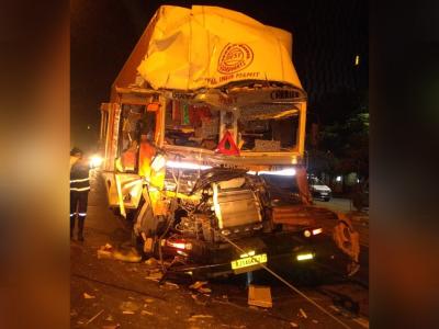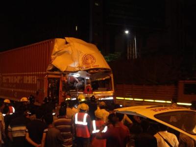 ठाण्यामध्ये घोडबंदर रोड येथे कंटेनर आणि एका वाहनाची धडक होऊन अपघात झाला.