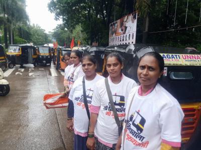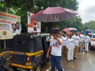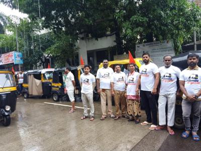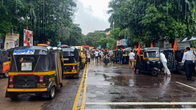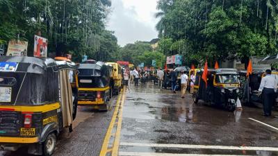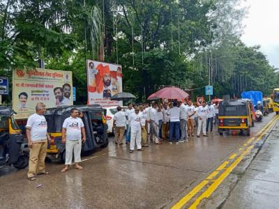 ठाणे महापालिका समोर एकनाथ शिंदे समर्थक रिक्षावाले एकत्र जमले होते. खासदार श्रीकांत शिंदे, माजी महापौर नरेश म्हस्के यांच्यासमेवत येथून रिक्षाचालकांची रॅली काढण्यात आली.