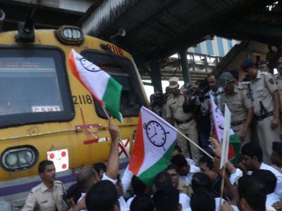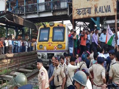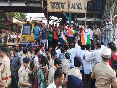 कळव्याहून सीएसटीकडे जाणारी 9.09 वाजताची लोकल आंदोलनकर्त्यांनी दोन मिनिटांसाठी रोखली