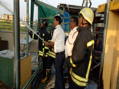 हि आग तेथील प्लास्टिकच्या पत्र्यांना लागल्याचे लक्षात येताच तीने उग्र रुप धारण करण्यापुर्वीच इतर बंबगाडयांनी घटनास्थळी पाचारण करण्यात आले