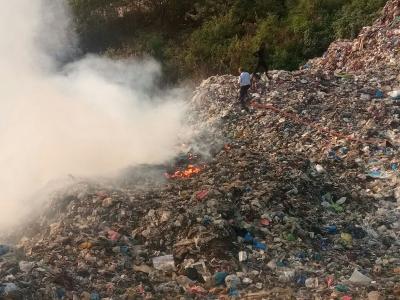 अग्निशमन दलाच्या दोन बंबगाड्या घनकचरा प्रकल्पाकडे रवाना केल्यानंतर सायंकाळी पावणे पाचच्या सुमारास इक्विटी बारच्या टेरेसवर धुर येऊ लागला
