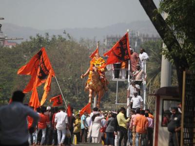 ठाण्यात शिवाजी महाराजांच्या अश्वारूढ पुतळ्याला अभिवादन