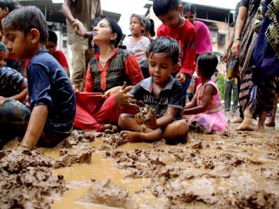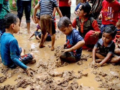 मातीत खेळताना सुरुवातीला काहीसे कावरे बावरे झालेले हे चिमुरडे नंतर मात्र वेळ संपला तरी मातीतून, चिखलातून बाहेर यायला तयार नव्हते.