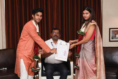 नताशा आव्हाड हिचा विवाह एलन पटेल यांचा विवाह नोंदणी पद्धतीने विशेष मॅरेज अॅक्टनुसार झाला. (फोटो - विशाल हळदे)