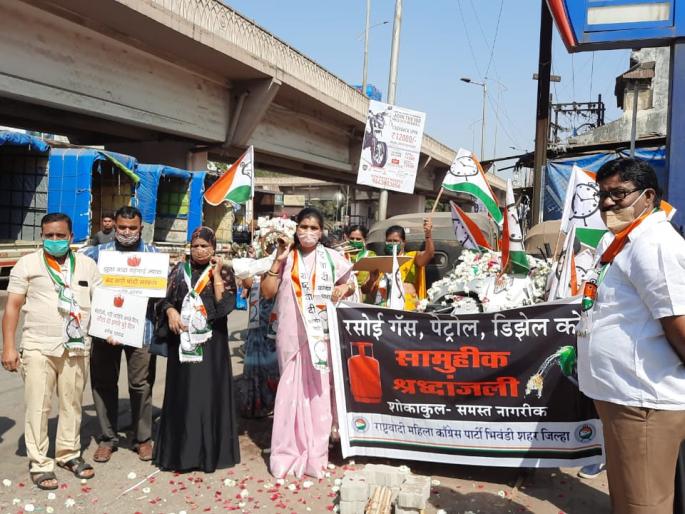 1 / 10भिवंडी : (नितिन पंडीत) : केंद्र सरकारने घरगुती गॅससह पेट्रोल , डिझेलच्या दरामध्ये मोठ्या प्रमाणात वाढ केल्याने सर्वसामान्य जनता मेटाकुटीला आली असल्याने या दरवाढीविरोधात राष्ट्रवादीच्यावतीने भिवंडीतील वंजारपट्टी नाका येथे रविवारी आंदोलन करण्यात आले. 2 / 10विशेष म्हणजे, केंद्र सरकारच्या उज्वला गॅस योजनेच्या माहितीसंदर्भातील वंजारपट्टी नाका येथील एका पेट्रोल पंपाच्या बाजूला लावलेल्या मोदींच्या जाहिरातीखालीच राष्ट्रवादीच्या महिला शहाराध्यक्षा स्वाती कांबळे व कार्यकर्ते जावेद फारुकी यांच्या नेतृत्वाखाली हे आंदोलन करण्यात आले. 3 / 10यावेळी केंद्र सरकारच्या विरोधात राष्ट्रवादी कार्यकर्त्यांनी जोरदार घोषणाबाजी केली. तर गॅस दरवाढीचा निषेध म्हणून रिकाम्या गॅसचा बाटला तिरडीवर ठेवून प्रतिकात्मक प्रेतयात्रा देखील काढण्यात आली.4 / 10याबरोबर, इंधन दरवाढीचा निषेध म्हणून हातगाडीवर मोटार सायकल तसेच चूल ठेऊन राष्ट्रवादीच्यावतीने केंद्र सरकारच्या इंधन दरवाढीचा निषेध केला. 5 / 10केंद्र सरकार देशातील सामान्य जनतेची फसवणूक करत असून वेळोवेळी इंधन दरवाढ करत असून सामन्यांचे कंबरडे मोडीत आहे. 6 / 10केंद्र सरकारच्या फसव्या धोरणांचा व इंधन दर वाढीचा निषेध म्हणून आज हे आंदोलन मोदींच्या बॅनरबाजीखालीच केले असून देशातील जनतेच्या माथी मारलेली इंधन दरवाढ कमी केली नाही तर याहून तीव्र आंदोलन छेडण्यात येईल, अशी प्रतिक्रिया राष्ट्रवादीच्या महिला शहराध्यक्षा स्वाती कांबळे यांनी दिली आहे.7 / 10दरम्यान, गेल्या काही दिवसांपासून इंधनाच्या दरात सातत्याने वाढ होत आहे. या इंधनाच्या वाढत्या दरांचा फटका सामान्यांना सहन करावा लागत आहे. 8 / 10अगदी गाड्यांच्या वाहतुकीपासून ते घराच्या किरणा मालापर्यंत सर्वच क्षेत्रांवर दरवाढीचा परिणाम जाणवून येत आहे. या पार्श्वभूमीवर राष्ट्रवादी महिला काँग्रेसने केंद्रातील मोदी सरकारविरोधात राज्यभर आंदोलन पुकारले आहे. 9 / 10राज्यात ठिकठिकाणी राष्ट्रवादी महिला काँग्रेसतर्फे आज पेट्रोल दरवाढीविरोधात 'चूल मांडा' आंदोलन करण्यात येत आहे.10 / 10राज्यातील ज्या-ज्या पेट्रोल पंपावर पंतप्रधान नरेंद्र मोदींची जाहिरात असेल, त्या सर्व पेट्रोल पंपांवर राष्ट्रवादीतर्फे 'चूल मांडा' आंदोलन केले जाईल, असे राष्ट्रवादी काँग्रेसच्या महिला प्रदेशाध्यक्षा रुपालीताई चाकणकर यांनी सांगितले आहे.